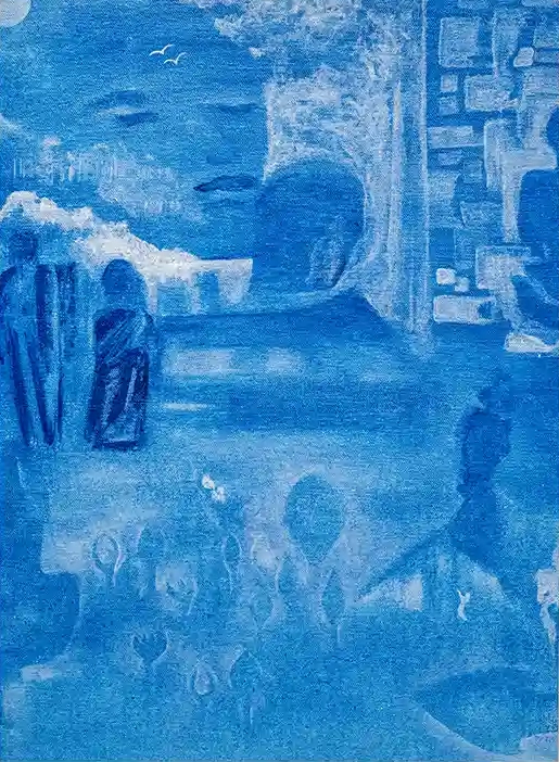 Kailas for me is a destination. The painting came first. As I was contemplating the journey – some walking towards it, some meditating on it, some approaching it through science – my attention went to the little figures in the waters. A small baby, a little soul with the arms extended… Then this poem flowed…