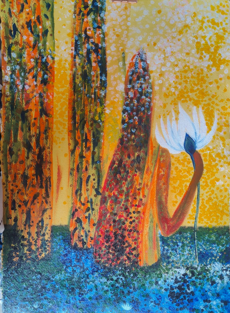 The pillars of memory trees connect the dream world with this. The bud dreams of blooming into a light. It dreams for someone to lift it up to bloom. It doesn’t realise yet that the full potential of the blooming light is within itself.