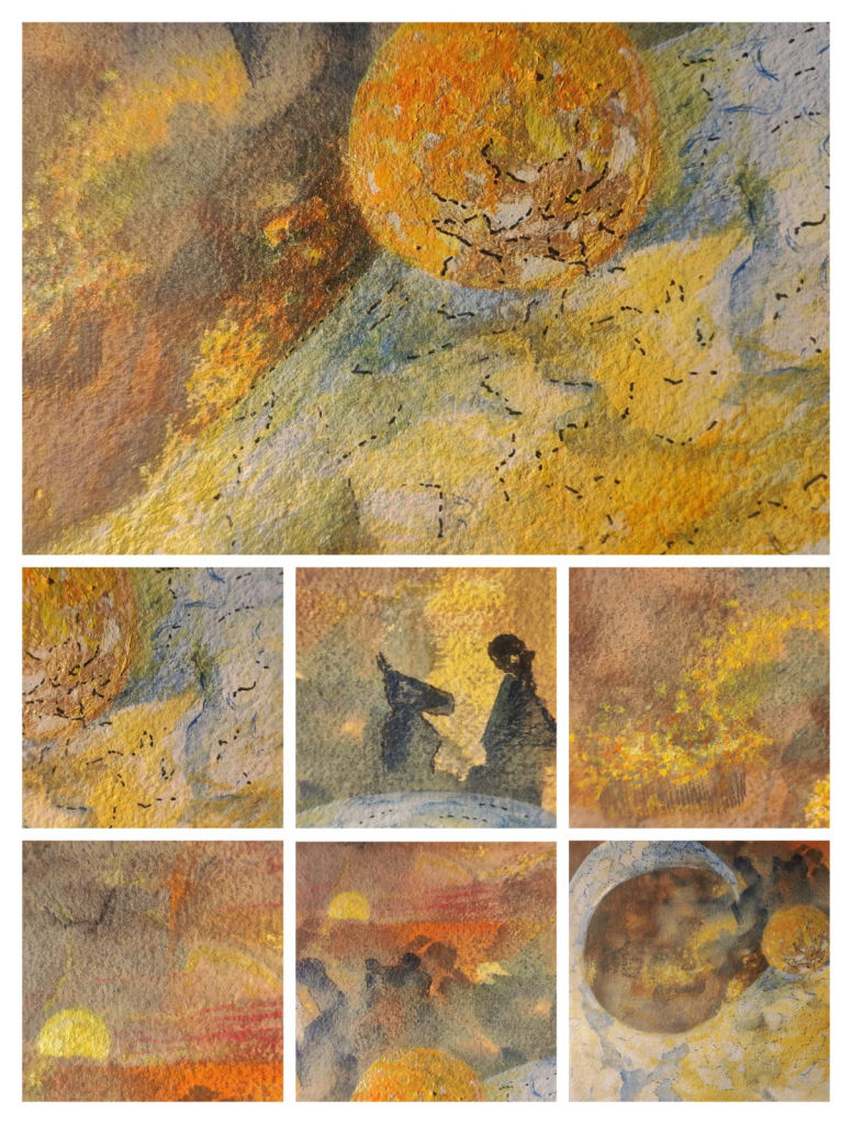 Painting was my go-to place from the beginning of creation. It helped me externalize emotion without needing structure or explanation. I did not require permission, large spaces, or even a witness then. A world that was only mine and I could play in it however I liked. All I needed were a few colours and some/ any material to paint on. The canvas, colours and I played in our little universes taking cues from each other. Colours, especially burnt sienna, became emotional cues – a visual way to connect to my inner self.
